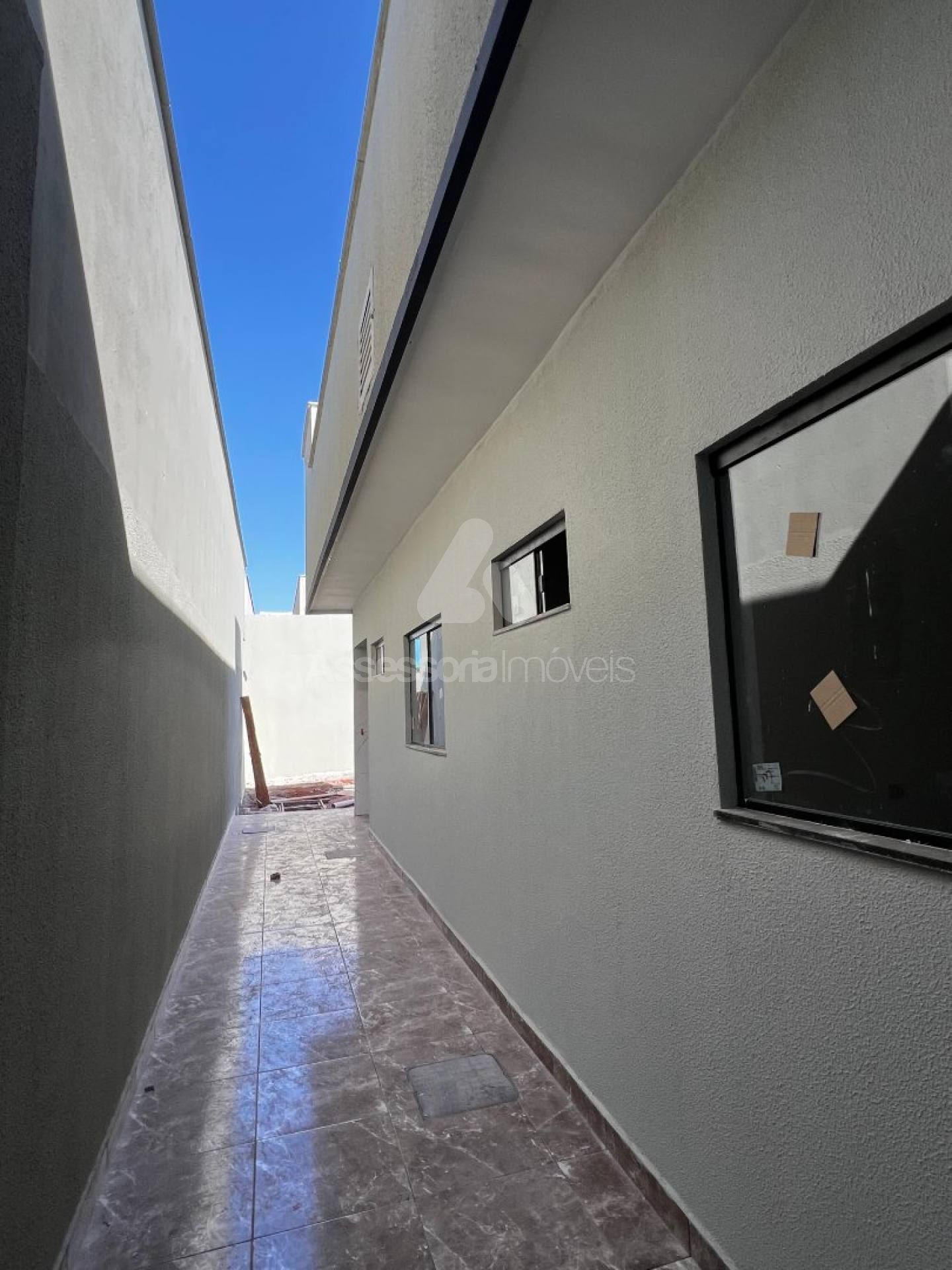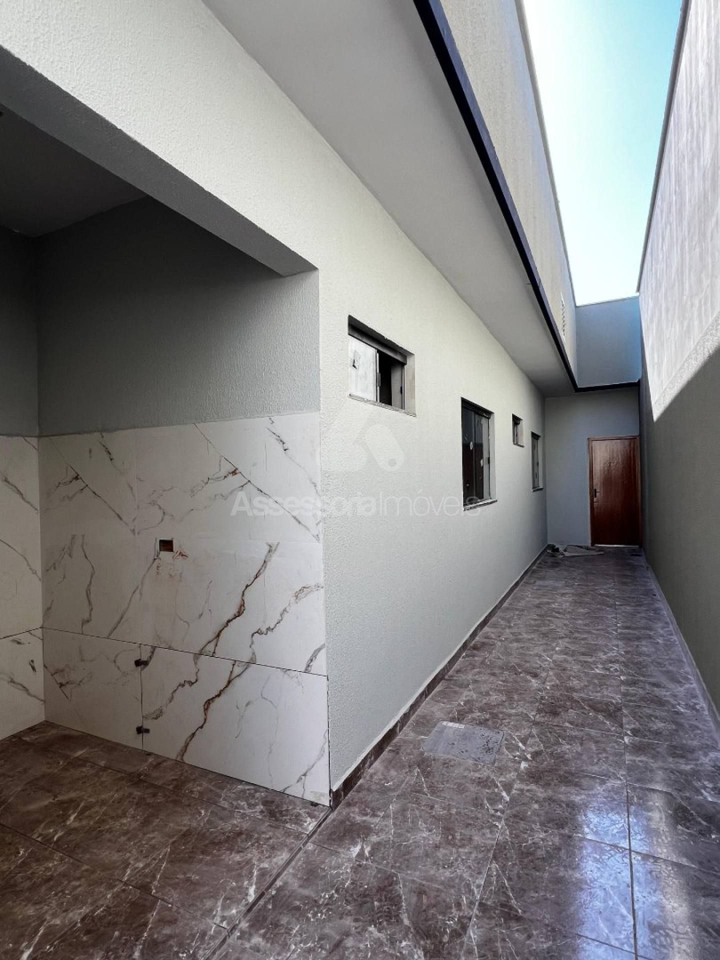 Casa moderna, com fachada imponente e calçadas totalmente revestidas em porcelanato retificado.